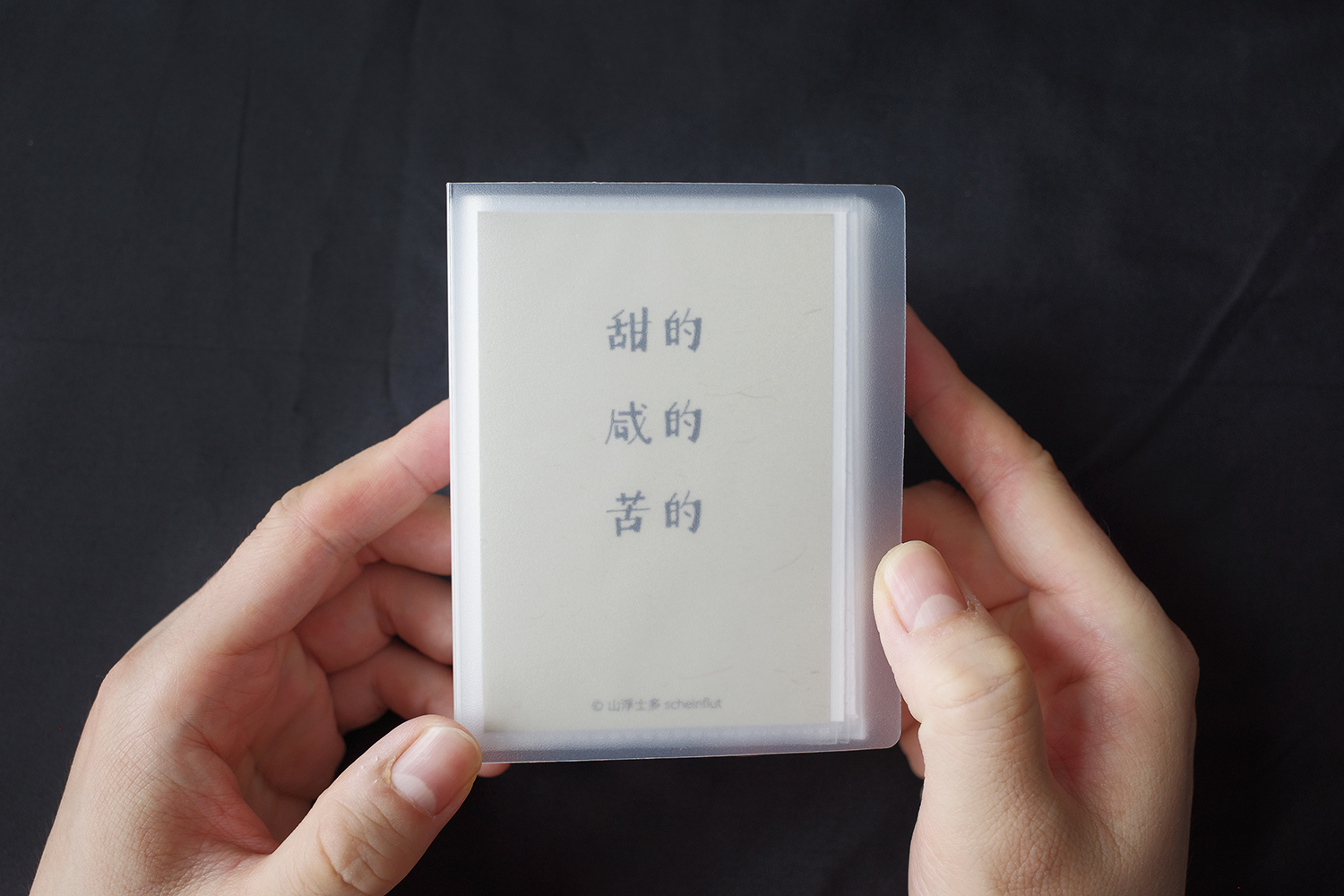 The poetry card set "Sweet, Salty, Bitter" features 58 short poems created by Scheinflut, organized into four thematic sections:Observations on Individual Life(Explores personal experiences and introspective reflections)Discussions on Public Life(Engages with societal dynamics and collective existence.)Passion for Artistic Life(Celebrates creativity, aesthetics, and cultural expression.)